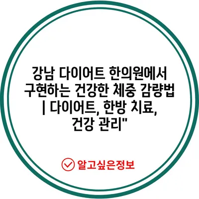강남 다이어트 한의원에서 구현하는 건강한 체중 감량법 | 다이어트, 한방 치료, 건강 관리”