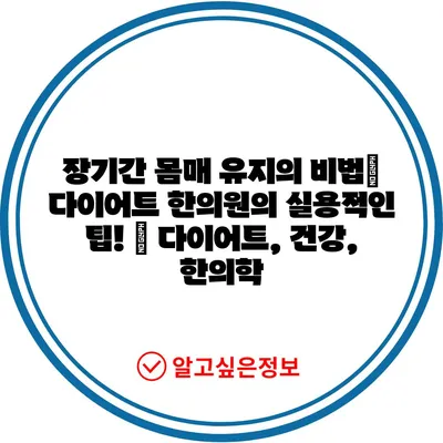 장기간 몸매 유지의 비법| 다이어트 한의원의 실용적인 팁! | 다이어트, 건강, 한의학