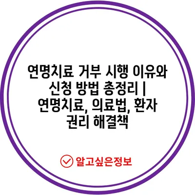 연명치료 중단에 관한 답변| Q&A 설명서 | 연명치료, 의료 결정, 윤리적 고려사항 연명치료는 환자의 생명을 연장하기 위한 의료 행위로, 많은 사람들이 이를 통해 생존의 기회를 찾습니다. 하지만 의료 결정과 관련해 다양한 고민과 질문이 생길 수 있습니다. 연명치료 중단을 고려할 때는 환자의 의사와 존엄성을 최우선으로 생각해야 합니다. 우리 사회는 이와 관련된 윤리적 고려사항을 충분히 논의하고 이해해야 … Read more