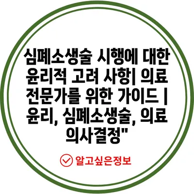 심폐소생술 시행에 대한 윤리적 고려 사항| 의료 전문가를 위한 가이드 | 윤리, 심폐소생술, 의료 의사결정”