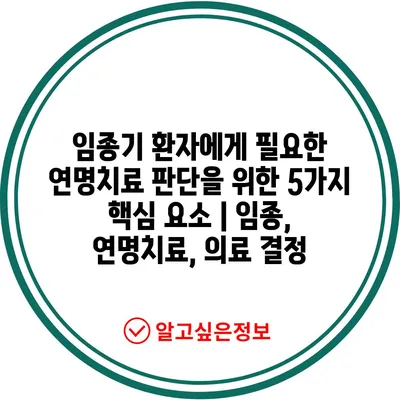 임종기 환자에게 필요한 연명치료 판단을 위한 5가지 핵심 요소 | 임종, 연명치료, 의료 결정
