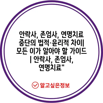 안락사, 존엄사, 연명치료 중단의 법적·윤리적 차이| 모든 이가 알아야 할 가이드 | 안락사, 존엄사, 연명치료”