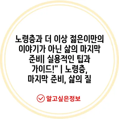 노령층과 더 이상 젊은이만의 이야기가 아닌 삶의 마지막 준비| 실용적인 팁과 가이드!” | 노령층, 마지막 준비, 삶의 질
