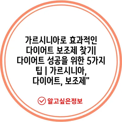 가르시니아로 효과적인 다이어트 보조제 찾기| 다이어트 성공을 위한 5가지 팁 | 가르시니아, 다이어트, 보조제”
